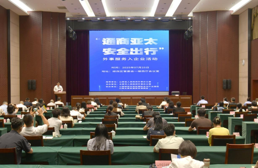 7月25日,由太原市人民政府外事办公室主办、山西转型综改示范区国际合作产业园和武宿综合保税区协办的“通商亚太 安全出行”外事服务入企业活动在山西转型综改示范区举行。全市47家外向型企业和各县(市、区)外事部门负责人参加。