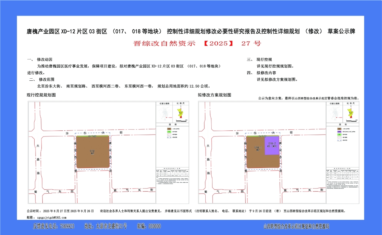 唐槐产业园区XD-12片区03街区(017、018等地块)控制性详细规划修改必要性研究报告及控制性详细规划(修改)草案