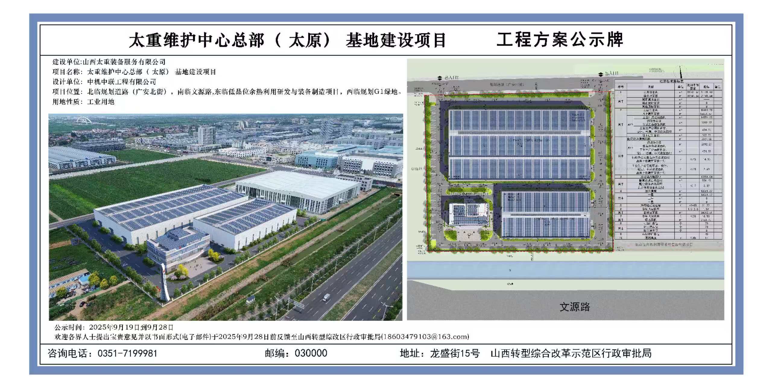 太重维护中心总部(太原)基地建设项目建筑工程设计方案的公示