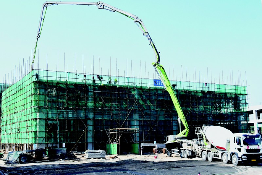 刘丽说道。在B1号厂房前,数辆混凝土搅拌车一字排开,混凝土泵送车伸着长长的“手臂”,正在 进行最后一层混凝土的浇筑。“目前,该厂房主体结构完工90%。”王斌介绍。