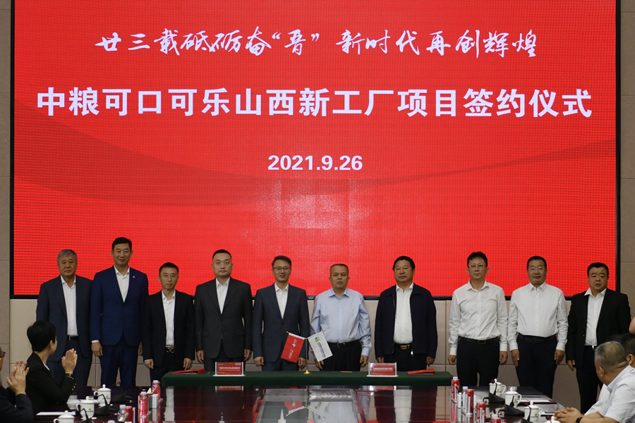 9月26日,中粮可口可乐山西新工厂项目签约仪式在山西综改示范区隆重举行。省政府副秘书长、综改区党工委书记、管委会主任刘锋,中粮可口可乐党委书记、首席执行官庆立军出席签约仪式。
