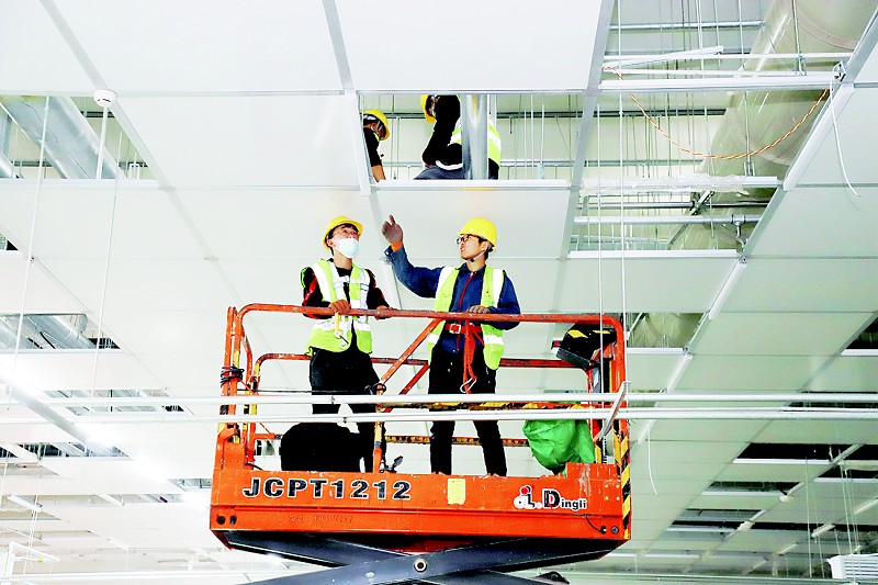 日前,山西转型综改示范区山西华阳中来光电科技股份有限公司(下称“中来光电”)年产16GW高效单晶电池智能工厂项目7万多平方米的大型生产车间内,随着高空车垂直起降,工人被送到十多米高的车间顶部;车间地面上,运输车满载着装修材料,驶向指定区域卸货;车间南侧的地面,刚刚完工的环氧地坪光洁一新……近百名施工人员忙碌在不同作业面上,紧张地进行内部装修与安装。