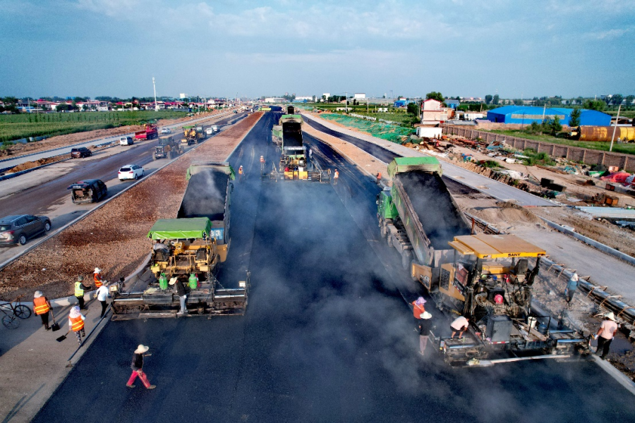 8月8日,立秋时节,依旧骄阳似火。在山西综改示范区小牛线西延项目建设现场,焊接声、切割声、沥青摊铺机的轰鸣声此起彼伏,工人们正铆足干劲紧张忙碌在各自的施工点位上。随着运输车将沥青导出和沥青摊铺机的移动,路面热气蒸腾,立刻变得“烟雾缭绕”起来,一条宽阔、笔直的黑色沥青路面呈现在人们面前。作为2023年山西省重点工程项目的小牛线西延项目正加速推进。