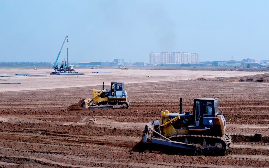 经过一个多月的奋战,近日,晶科能源年产56GW垂直一体化大基地项目一期地块土方回填完成。