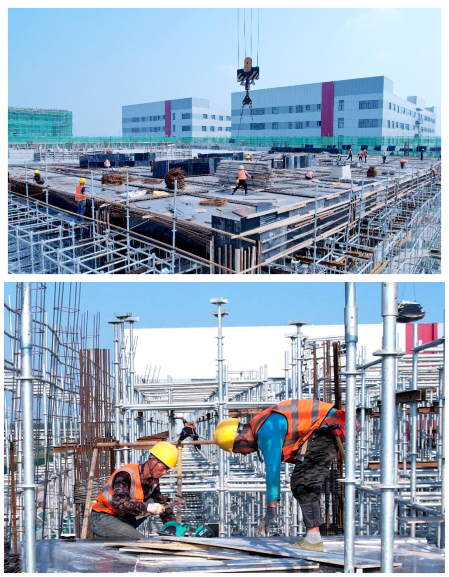 走进项目现场,生产区、生活区、办公区有序布局,安全生产警示标识悬挂醒目,身着反光马甲的施工人员劳保佩戴齐全,各种建筑材料定置摆放分门别类整齐有序。据介绍,项目二期自开工以来,项目部充分发挥团队凝聚力,优化施工组织、合理配置资源,克服了工期紧张、临建主体同施工、环保压力大等诸多困难,严格控制节点工期,仅用不到80天便相继提前完成了两栋厂房的封顶。按照施工计划,2#厂房将于10月中旬左右完成主体结构封顶。项目整体预计将于明年5月份全部竣工投产。