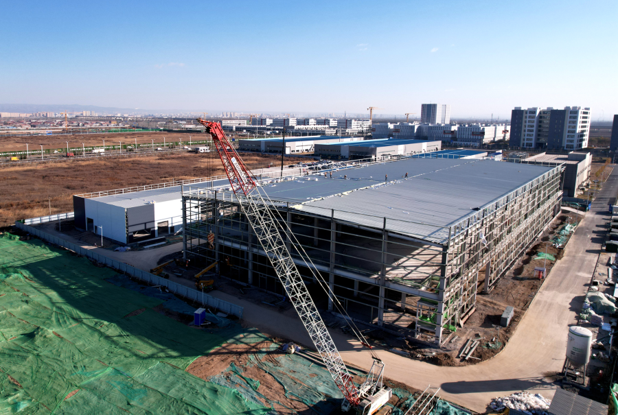 11月22日,在山西综改示范区中国电科(山西)三代半导体技术创新中心建设现场,两栋钢结构建筑拔地而起。经过全体建设者百日会战,主体结构顺利封顶。