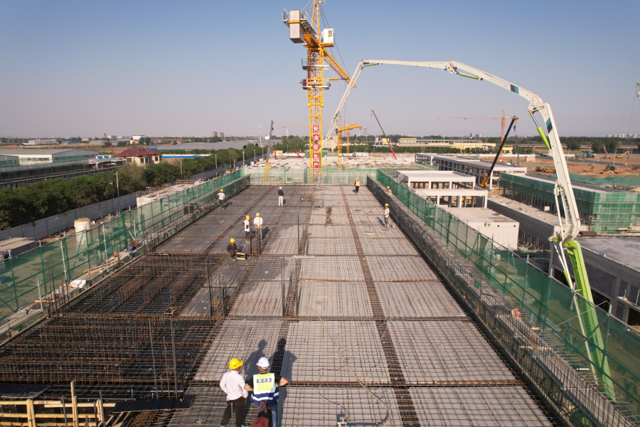 项目自今年1月20日开工以来,项目实施单位潇河新兴产业园区服务中心、建设单位中铁建发展集团有限公司充分发扬苦干实干精神,严把施工安全、质量、进度关,攻克单体结构数量多、结构形式复杂,桩基、土建、安装多专业交叉施工等难点,集中资源全面推进工程建设,有效保障施工进度,顺利完成了桩基、支护、降水、基础、主体结构等工序。“我们通过明确建设目标,加强现场管控,合理筹划、狠抓落实,树立安全第一、以人为本的理念,防范建设风险,突破重点难点,确保项目建设有序推进。”项目负责人说道。