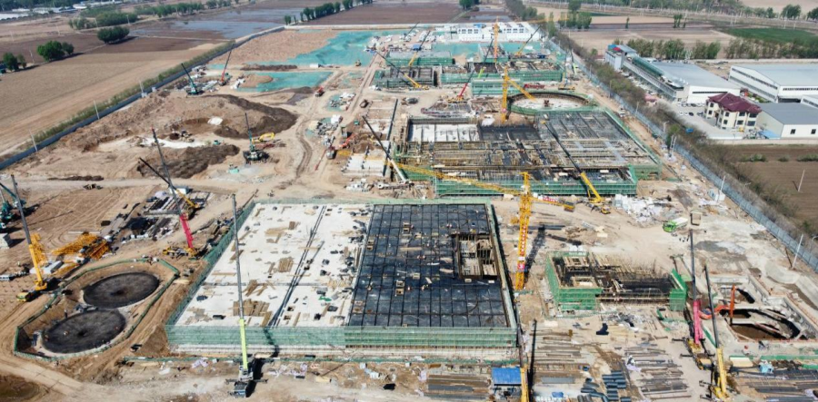 潇北污水处理厂项目,是山西转型综改示范区深入贯彻习近平生态文明思想和贯彻落实省委、省政府重大决策部署,推动实现“一泓清水入黄河”的重点工程,也是保护环境、维护生态系统的重要设施和推动经济转型、可持续发展的重要保障。项目总投资7.58亿元,包含进水在线监测间、粗格栅进水泵房、细格栅及沉砂池、调节池、事故池、提升泵房、除氟反应沉淀池等18个单体建筑,一期处理污水能力可达12万吨/日。项目建成后,将保障山西晶科能源智造有限公司、山西中来光能电池科技有限公司等潇北片区重大转型项目及居民生产生活污水排放需求,为山西转型升级注入新动力。