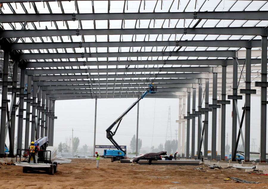 “从6月19日钢柱首吊以来,我们在严控工程质量、抓好风险管控的前提下,紧盯关键工期节点,目前二标段厂房已经完成60%的钢构主体安装。”负责项目厂房钢结构安装的山西建投潇河公司现场负责人介绍,为确保项目进度,公司市场、设计、采购、制造、施工等部门协同联动,充分发挥钢结构全产业链优势,有效保障供给。项目施工团队根据工程建设情况,精细策划,对吊装作业开展全面安全技术交底,对大型机械、吊索吊具等进行逐项验收、统一管理,确保吊装施工安全有序。