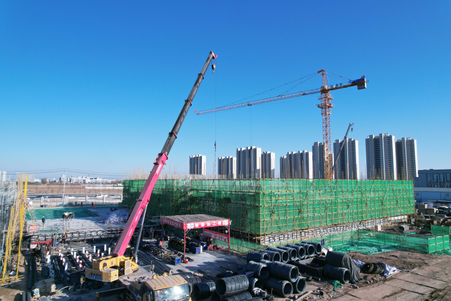 走进项目建设现场,脚手架林立,塔吊和吊车不断将建筑材料吊运至指定作业区域,现场机械轰鸣声、金属碰撞声此起彼伏。统一身着马甲的工人们忙碌地进行捆扎、搬运、支护等作业,安全小喇叭循环播放着安全提示信息。项目现场负责人介绍,去年冬天完成了地面以下部分施工,今年春节后复工以来,进入地面以上主体结构施工,项目部采取多作业面同步施工,目前,现场100多名建设者正加快建设。