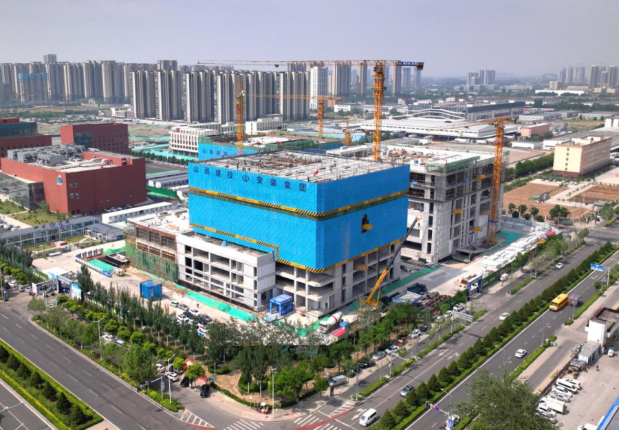 5月15日,全国一体化算力网络国家枢纽节点山西枢纽(太原)项目工地,500余名建设者奋战在施工一线。“党建引航与数智赋能双重驱动,推动项目建设加速向前,目前两座数据中心主体结构已顺利封顶,科研办公楼正全力冲刺主体结构封顶目标。”项目党支部书记、经理左卫刚告诉记者。