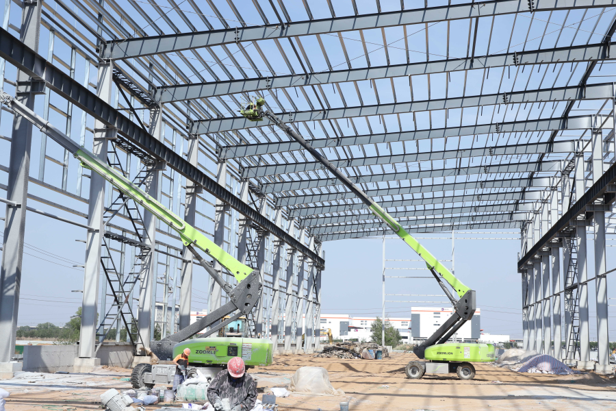 走进施工现场,新建的生产车间和综合楼并排矗立眼前,整个项目已具雏形。生产车间内,工人乘坐升降车,仔细地为钢柱喷涂防火涂料,综合楼二次结构施工也在加紧进行。项目现场负责人介绍,按照建设计划,生产车间将在5月底进行围护面板安装,综合楼将在6月中旬完成二次结构墙体砌筑。面对近期的高温天气,项目部将作业时间改成“早出晚归”模式,通过“干两头、歇中间”错时施工的方式避开正午高温时间段。同时,配备了防暑降温的药品和饮品,在缓解高温作业压力的同时,也为项目正常推进创造了有利条件。