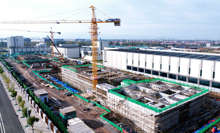 10月24日,在山西转型综改示范区潇河新兴产业园区供水工程二期项目建设现场,施工人员抢抓秋日施工黄金期,争分夺秒推进项目建设。目前,该项目两个单体主体完工,备用水池池壁即将合龙。